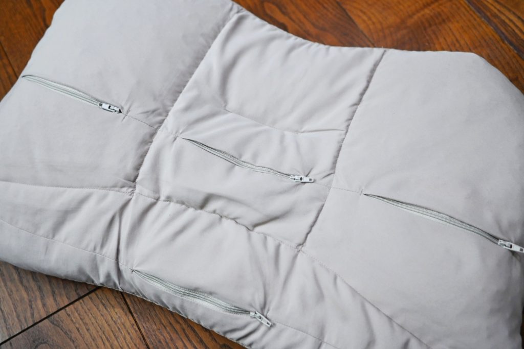 中材を出し入れできるファスナー付きのポケットは4つついていて、それにより「首元だけ高くしてフィット感を高めたい」「横向き寝しやすいように左右を高くしたい」などの細やかな調整が可能となっています。